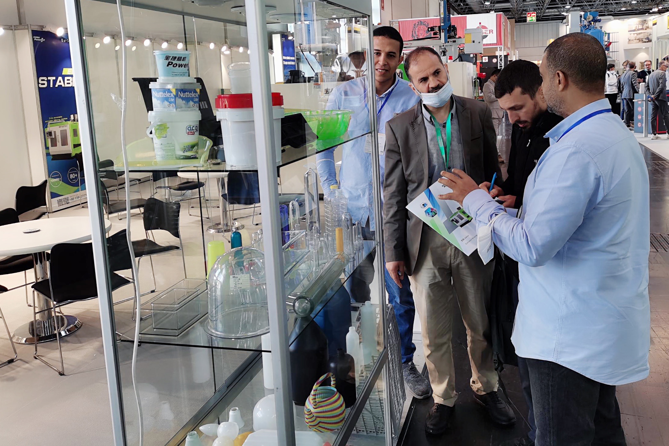 現場展示的PET600-S6 薄壁包裝專用注塑機和EB10H 全自動擠出吹塑機一經亮相便吸引了眾多觀展客人的注目,不少觀展客人來到洽談區坐下詳談,對展示設備的成型方案表示認可。